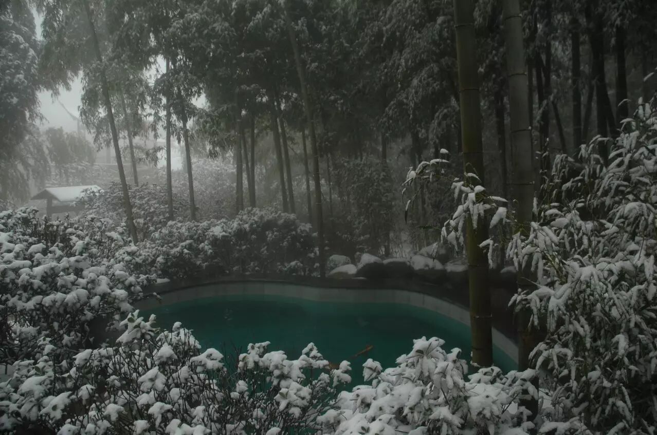 在江南天池,寒冬中泡澡、欣赏雪景,叫高山汤泉