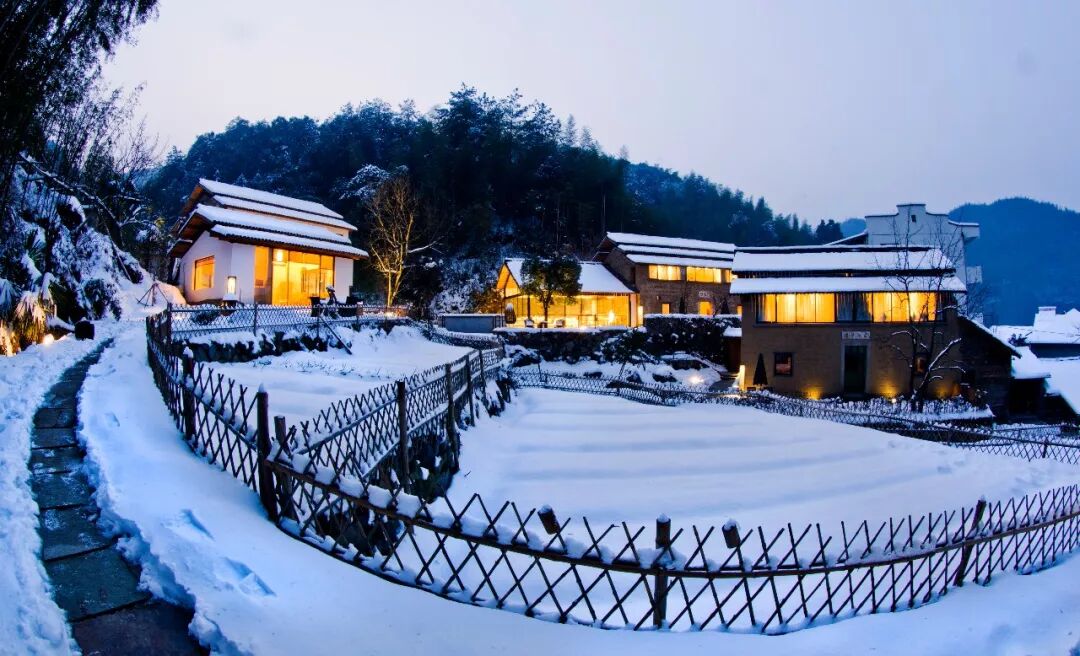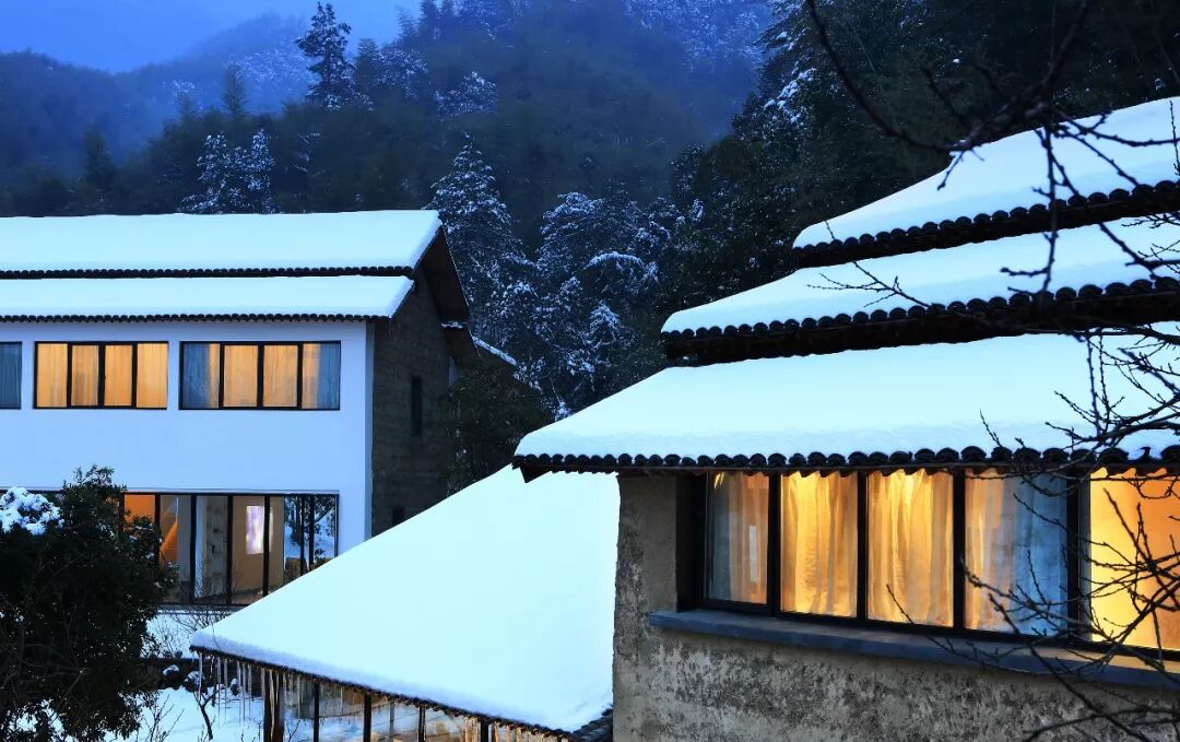 落雪成景,倚门听雪,是雪落的闲逸。(天荒坪横路村)