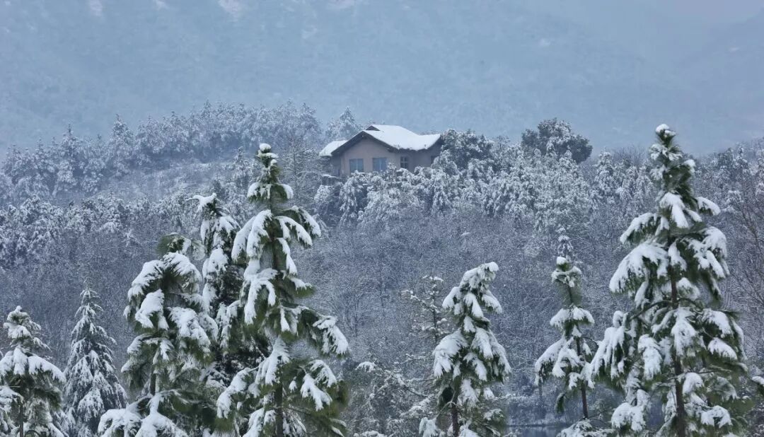 安吉雪飘乍觉寒,一片银装满江南。一朝安吉雪,半梦醉人间。