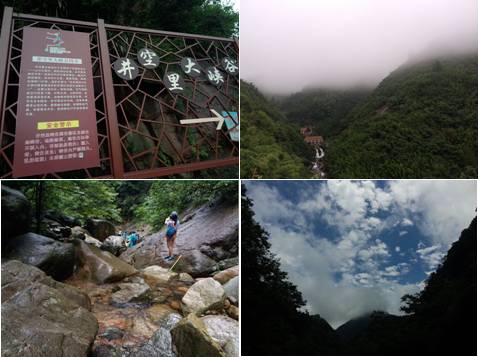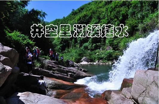 井空里峡谷位于安吉、余杭和临安三县交界处。这儿的溪滩和峡谷完全可以和“浙西天滩”媲美,山高水长,植被茂盛,峡谷绵绵十余里,最高处有1000米。 是杭州周围最美的山脉峡谷之一。峡谷气势很大,满眼望去都是绿色的天地,远处连绵起伏的群山在山岚的飘忽中时隐时显,几处耸立的崖壁如同刀削一般,颇有张家界的味道