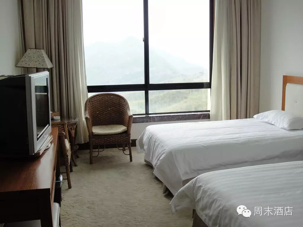 “酒店在山上,房间面积不大,分新旧楼(1号楼比2号楼更新一些),豪华房和商务房均为新楼房型,卫生相对可以,电视、吹风机都是妥妥的,风景房山景不错,云雾缭绕,晚上可以看星星,早上可以观日出,就是会有些虫子,因为是在山里的原因,不可避免。”